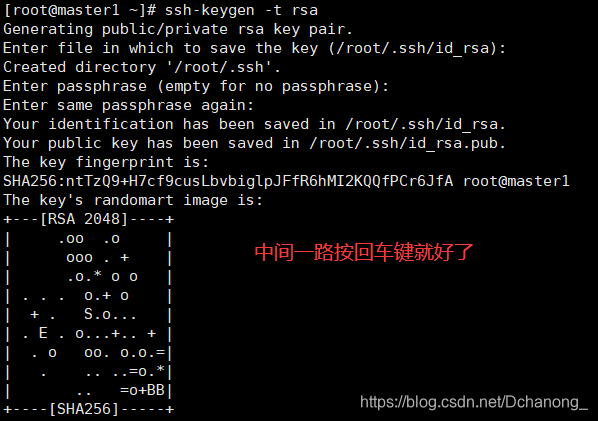 四个节点都要做一遍,中间一路回车,生成的公钥秘钥会在 /root/. ssh/ 路径下