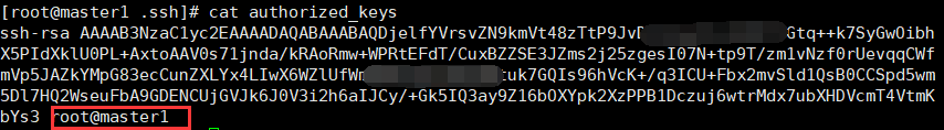 [root@master1 .ssh]# cat authorized_keys此时,公钥已经保存在 authorized_keys 文件中了